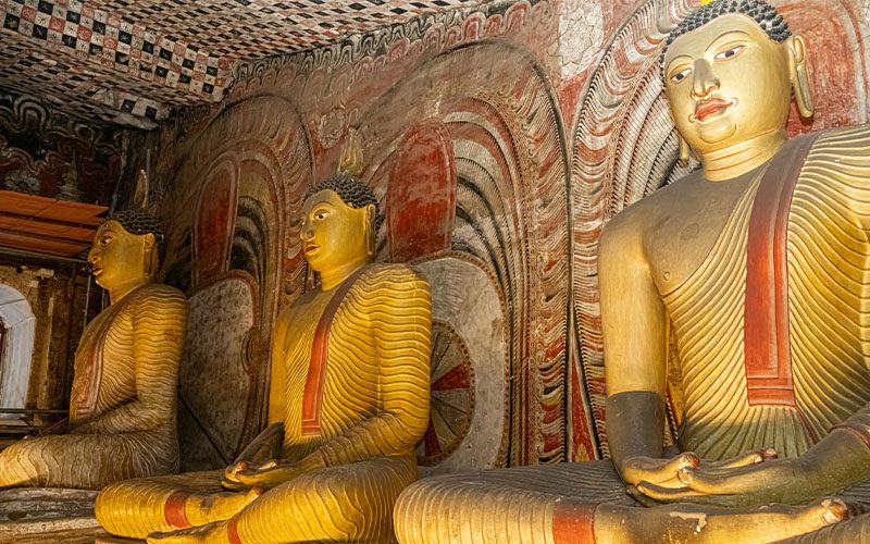 Drive to Kandy with a stop at the Dambulla Cave Temple. Visit a spice garden to taste fresh herbal teas and enjoy an evening cultural performance showcasing traditional music and dance. Overnight in Kandy.